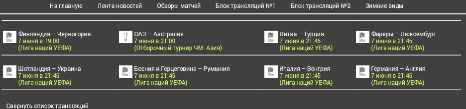 Игры сборных на сегодня