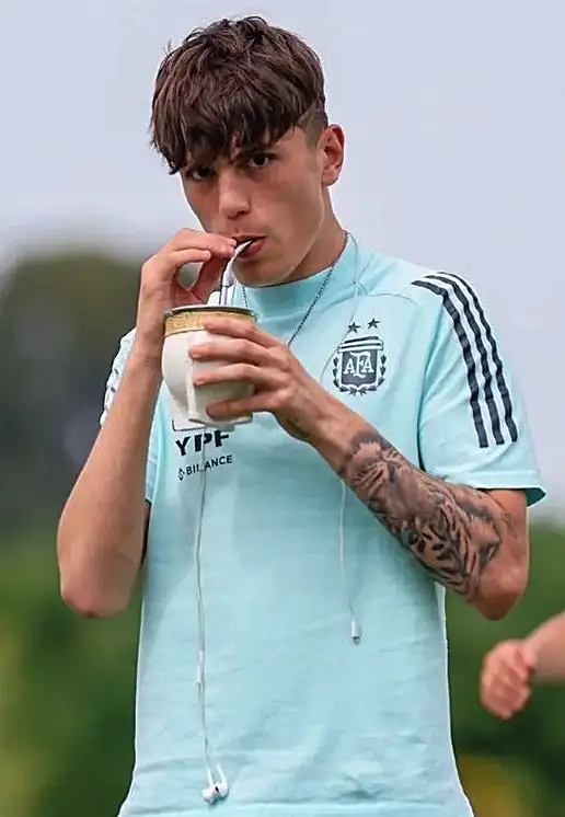 Тренер клуба Челси Mauricio Roberto Pochettino Trossero,игрок Ливерпуля Alexis Mac Allister,и Ángel Fabián Di María Hernández