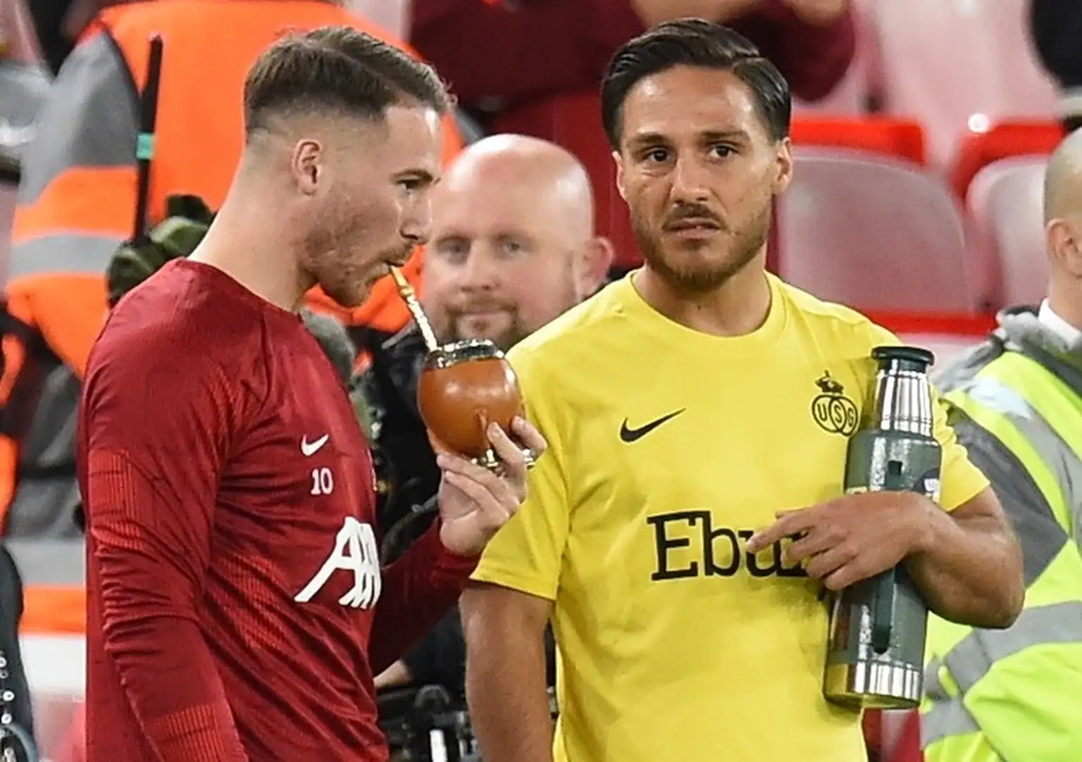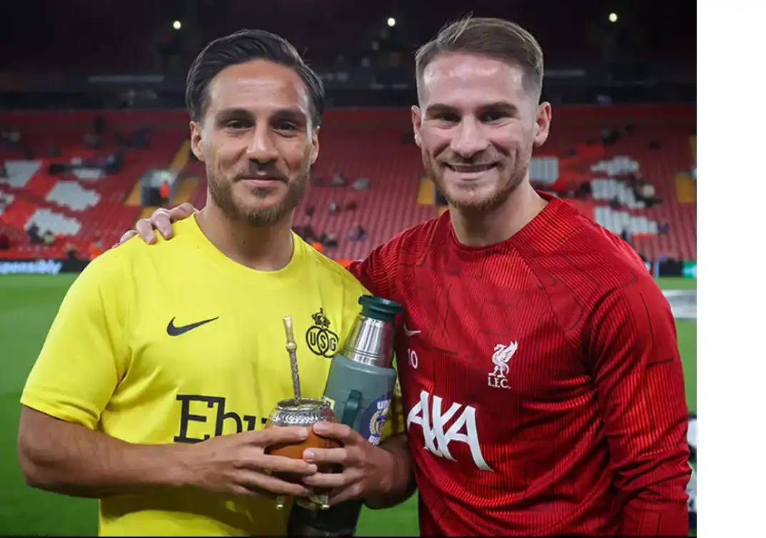 Празднование гола игроками Ливерпуля аргентинцем МакАлисером и уругвайцем Нуньесом :yerbamigos: